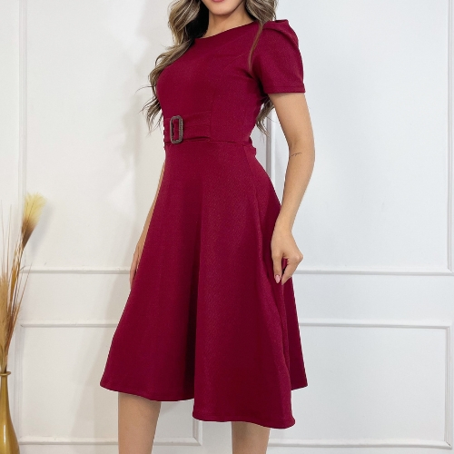 Vestido no Crepe de Malha Evasê Midi Moda Versátil para Todas as Ocasiões