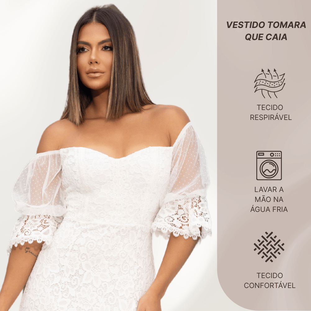 Vestido Noiva Feminino Ombro a Ombro Tomara que Caia Manga Renda Elegante Confortável Noiva