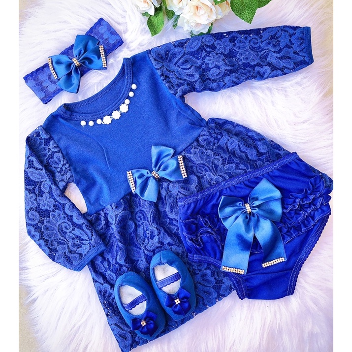 vestido para bebê manga longa, sapatinho laço e calcinha tapa fralda festas em geral