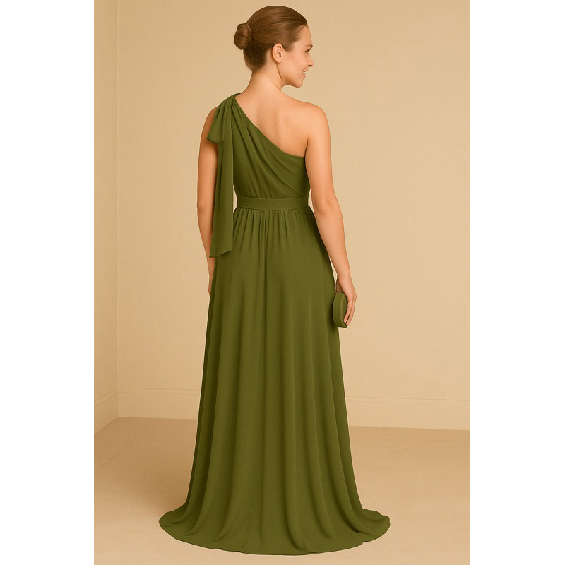 vestido para madrinha formatura ou convidadas sem brilho de um ombro com laço 14