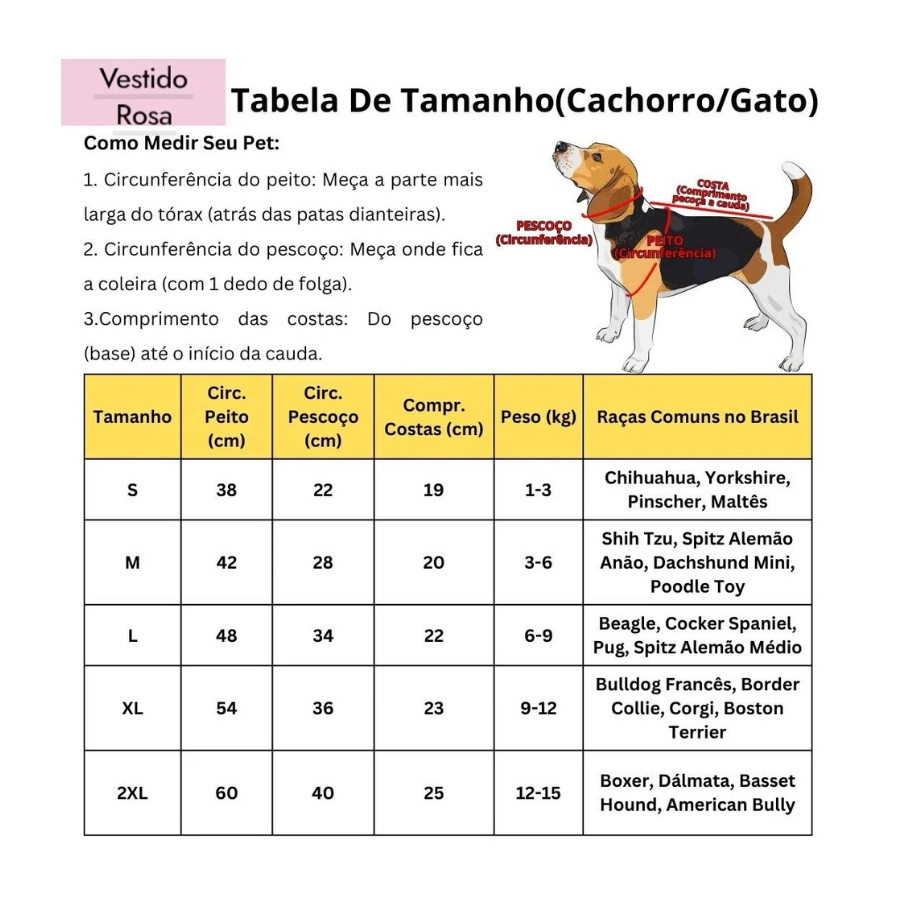 Tabela rápida para você comparar este item com outros similares de Roupas e Acessórios para Animais Domésticos dentro do nosso catálogo.