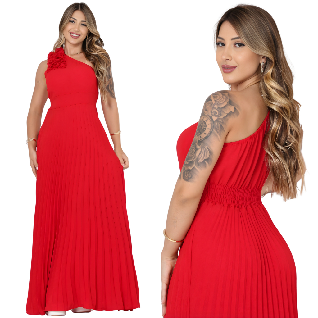Vestido Plissado Unilateral Feminino de casamentos e formaturas