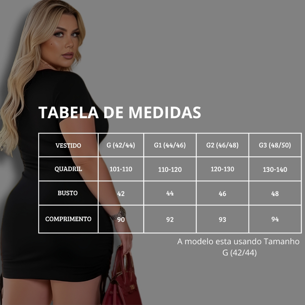 Vestido Plus Size Modelador Franzido com Amarração lateral ✨ Descrição do Produto Este vestido plus size é a escolha perfeita para quem busca conforto, estilo e versatilidade em uma única peça. Com um design sofisticado e atemporal, ele é ideal para diversas ocasiões, proporcionando uma modelagem que valoriza a silhueta de forma natural. O Detalhe na lateral combinam elegância e frescor, enquanto o tecido Ana Ruga Premium garante um caimento impecável. ✅ Composição: 95% Poliéster 5% Elastano ✅ Características: Modelo sem bojo Tecido drapeado de alta qualidade Amarração na Lateral Design versátil e fácil de combinar Cores lisas que trazem um toque de sofisticação para o visual ✅ Tamanhos Disponíveis: G (42/44) G1 (44/46) G2 (46/48) G3 (48/50) ✅ Medidas Aproximadas: G: Busto 95-101 cm | Cintura 74-82 cm | Quadril 102-110 cm G1: Busto 101-110 cm | Cintura 82-90 cm | Quadril 110-120 cm G2: Busto 110-120 cm | Cintura 91-105 cm | Quadril 120-130 cm G3: Busto 120-130 cm | Cintura 105-117 cm | Quadril 130-140 cm ✅ Vantagens Exclusivas: Tecido de alta resistência e durabilidade Não desbota com o tempo Confortável, com leveza e elasticidade para um ajuste perfeito ao corpo Não encolhe após a lavagem Cuidados: Para garantir a durabilidade do produto, siga as orientações de lavagem presentes na etiqueta interna. As cores podem variar ligeiramente devido à edição das fotos ou configurações do dispositivo. ✨ Pronta Entrega Todos os produtos estão disponíveis para envio imediato. Seu pedido será postado em até 24 horas úteis após a confirmação da compra. Envio rápido e seguro!