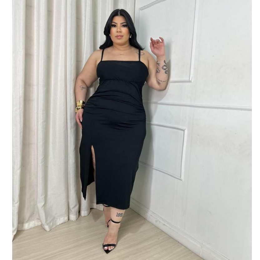 VESTIDO PLUS SIZE MIDI COM ALÇA E FENDA SEM BOJO SOLTINHO FESTA