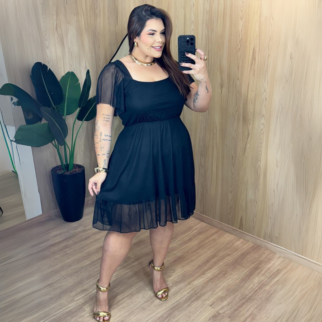 Especificações: Apresentamos o deslumbrante Vestido Feminino Plus Size Manga Curta Rodado Com Tule forrado luxo Premium Gabriela, uma peça que exala luxo e glamour para a mulher moderna. Com um design premium, este vestido é confeccionado em tule trabalhado, que proporciona um caimento perfeito e uma silhueta deslumbrante. A leveza do tule cria um efeito etéreo e romântico, enquanto o tom preto clássico traz sofisticação e versatilidade, ideal para diversas ocasiões. O vestido rodado é perfeito para quem busca se sentir confiante e elegante, realçando as curvas de forma harmoniosa. O toque especial do acabamento detalhado transforma essa peça em um verdadeiro objeto de desejo. Ao vesti-lo, você não apenas se sente linda, mas também se destaca pela sua presença marcante e cheia de estilo. Experimente elevar seu guarda-roupa com este vestido que combina conforto e sofisticação, perfeito para brilhar em qualquer evento. Não perca a chance de adicionar essa peça exclusiva à sua coleção! Obs.: Medidas são referente a nossa modelo. *Fotos reais do produto » Aqui você é prioridade. » Confecção própria com mais de 10 anos de mercado. » Produto 100% nacional, a compra é feita direto da fábrica. *Medidas da Peça Tamanhos Unico ( Veste 46 e 50) Busto: 1,28 cm Comprimento: Medio Empenhamos em aumentar a auto estima da mulher plus size qualquer dúvida é só usar o campo de perguntas que estaremos a disposição! **BOAS COMPRAS**