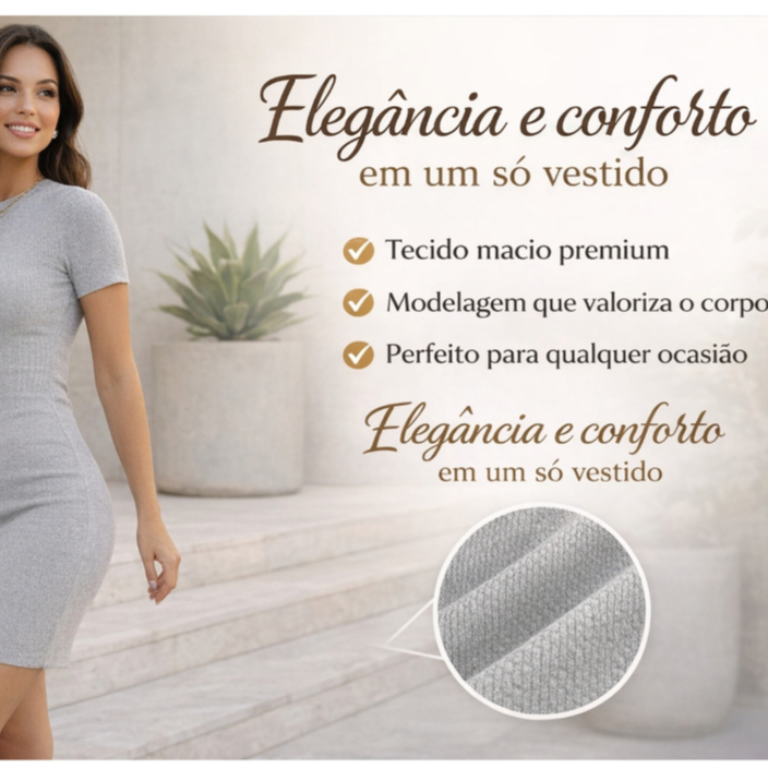 Vestido Premium Tricot Moletinho Manga Curta Tubinho Casual Elegante Inverno