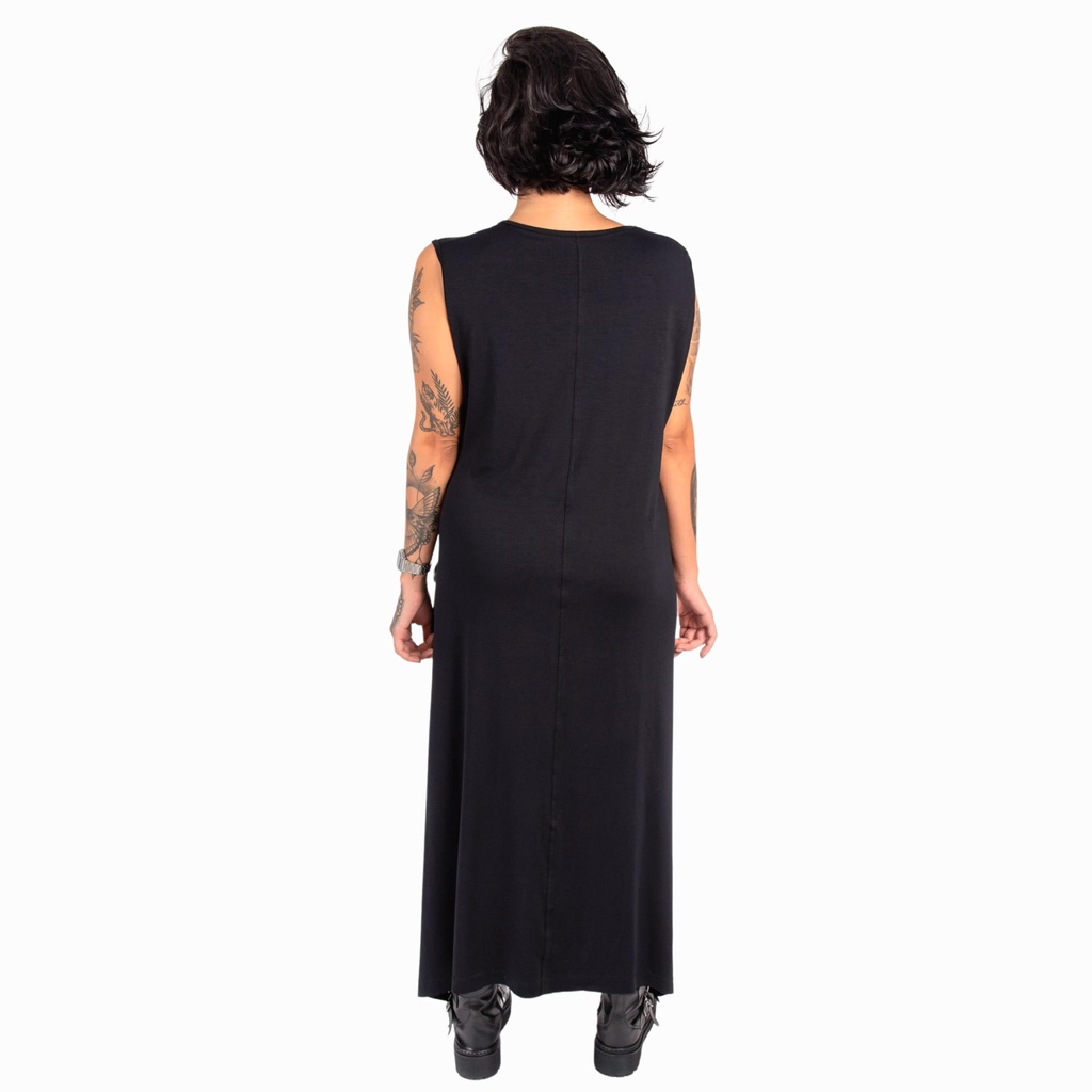 Vestido Regata Estampa Fases Lua Longo Bolsos Feminino