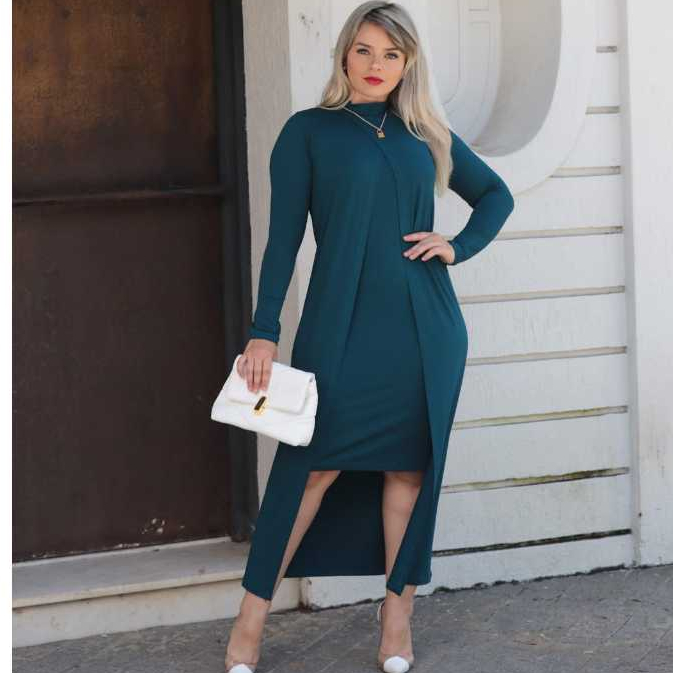 Vestido Regata tubinho Sobreposiçao De Manga Longa Feminino 2 Peças Viscolycra/Vestido moda Gringa. Esse modelo vem com duas pecas o vestido um pouco acima do joelho e a outra peca que completa sendo mais longa,no modelo manga comprida . Ideal Para Meia Estaçao a viscolycra de otima qualidade,enrriquecendo ainda mais sua peça a malha viscolycra e composta por viscose e elastano,entao ela estica super bem. Ele Tamanho Unico Veste 38 ao 44.
