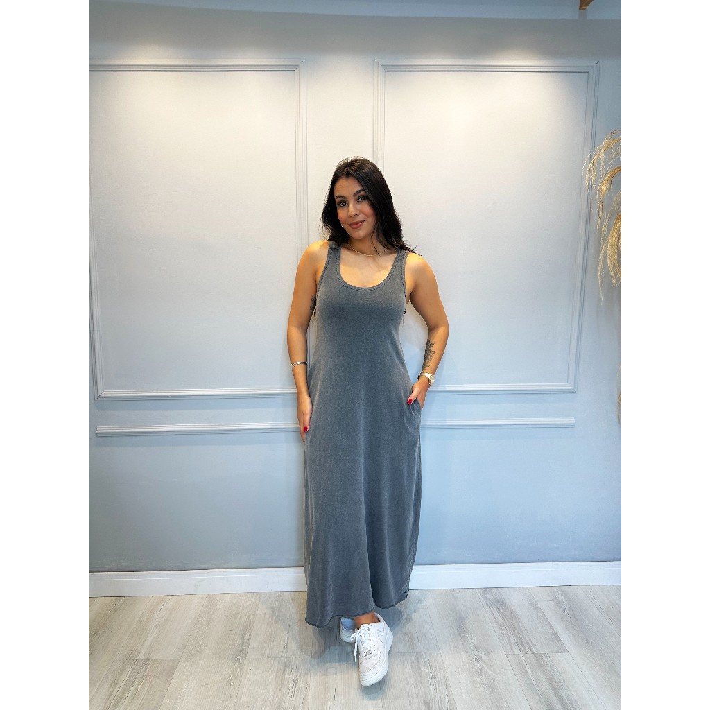 Vestido Regata Longo Estonado 100% ALgodão