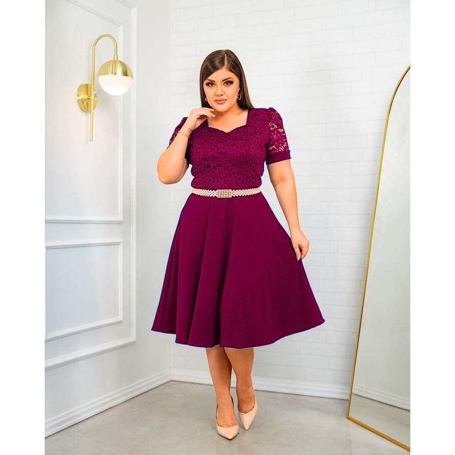Vestido Rodado Gode Feminino com Renda Manga Princesa Moda Evangélica Malhe Crepe Qualidade Premium
