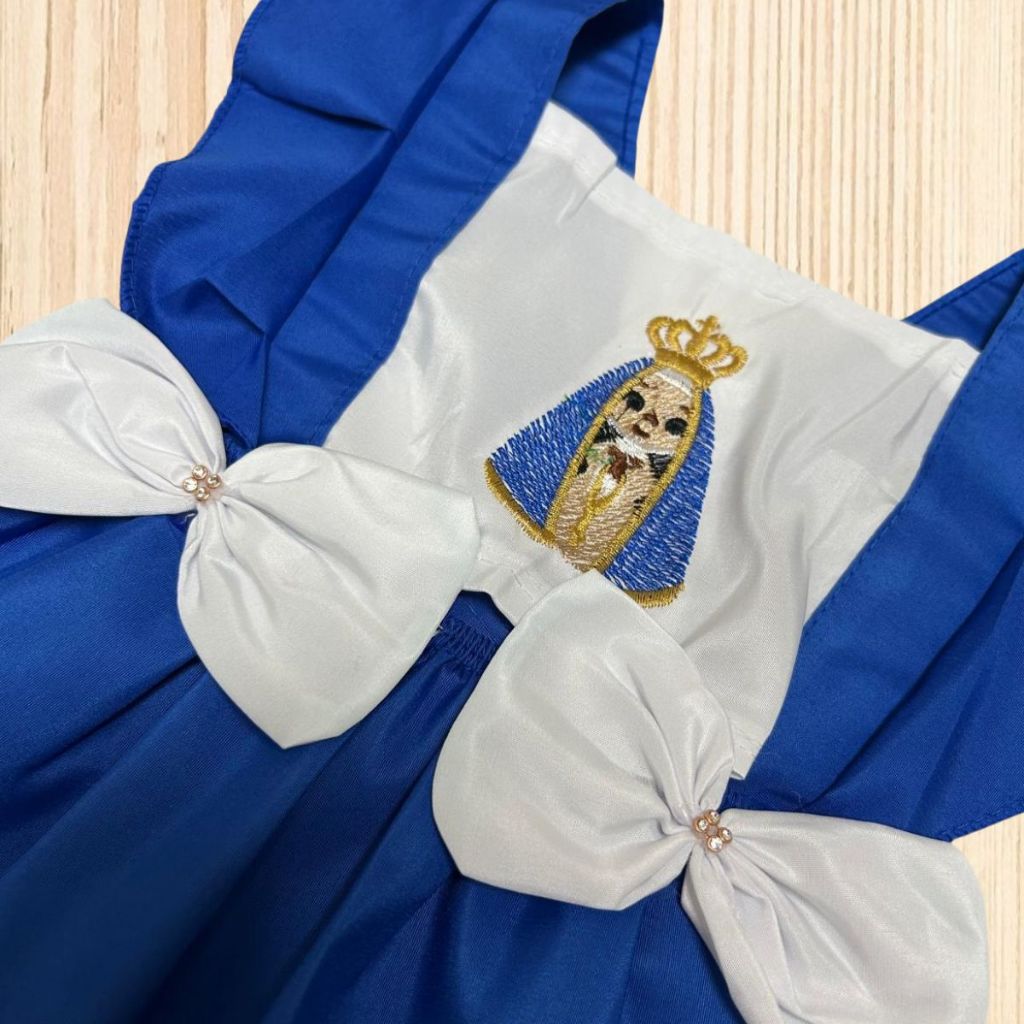 Vestido Romper Menina Bebê Temático Fantasia Verão Mesversário Nossa Senhora Aparecida 6 a 9 meses