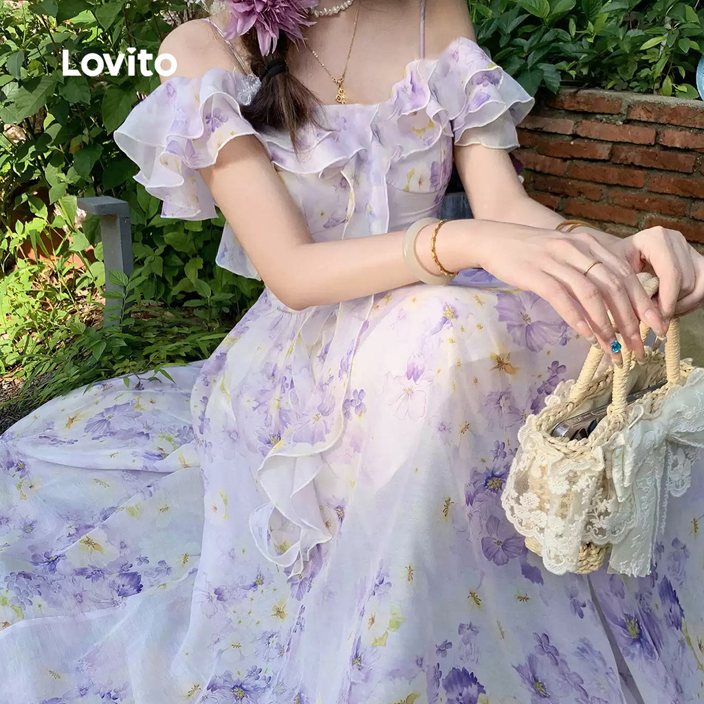 Vestido sem alças estampado com decote grande e babados-DRB149PBD597