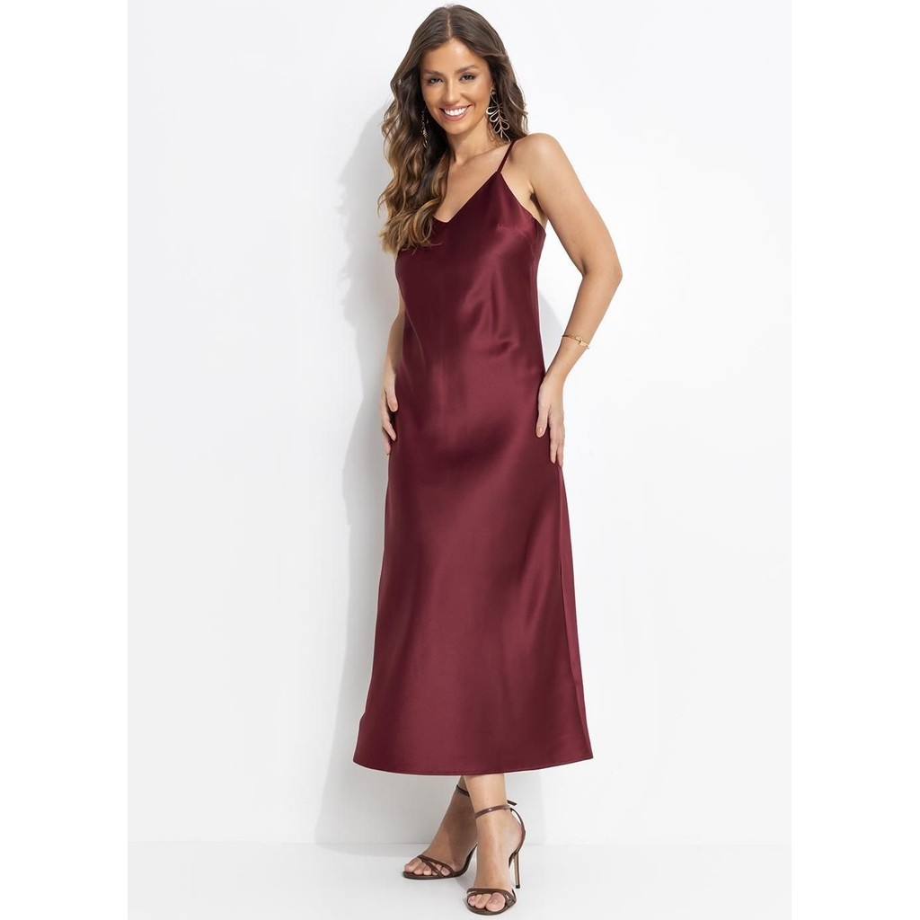 Vestido Slip Dress Crepe Plano Bordô Quintess