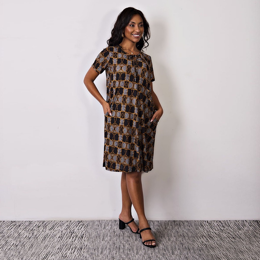 Vestido Soltinho Com Bolso Casual Estampado Liganete Confortável