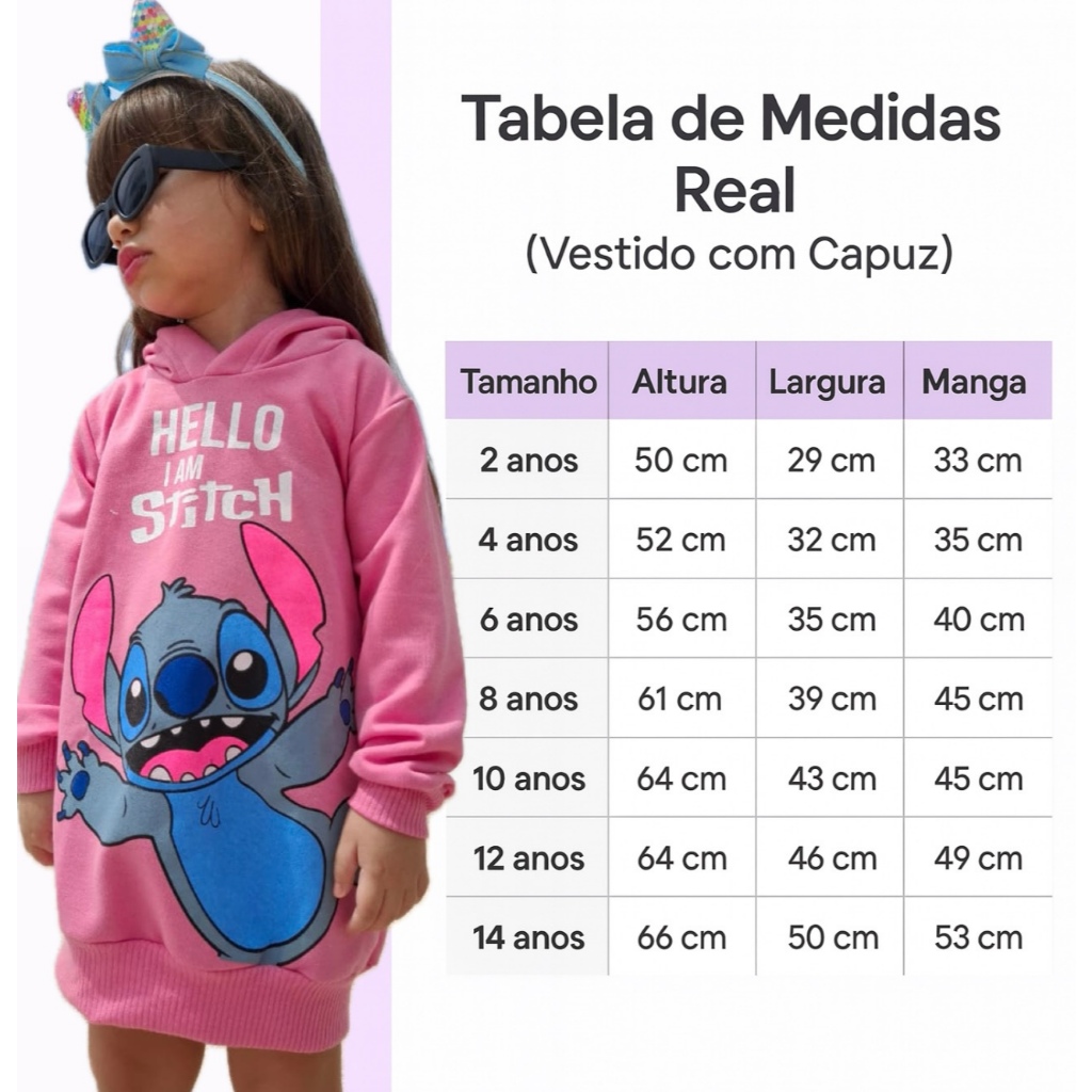 ✨ O vestido queridinho das meninas chegou! Perfeito para o frio, com tecido confortável, capuz estiloso e estampa Stitch super moderna — um modelo que chama atenção e deixa a criança linda e protegida. ✔ Manga longa ✔ Capuz estiloso ✔ Tecido macio e confortável ✔ Estampa Stitch de alta qualidade ✔ Ideal para passeios, fotos e dia a dia 📌 Não desbota 📌 Tecido confortável (não pinica) 📌 Ajuste perfeito 📌 Costura reforçada 📌 Modelagem infantil verdadeira (sem enganar tamanho) 📦 OS PEDIDOS FEITOS ATÉ AS 11H (EM DIAS ÚTEIS) SÃO ENVIADOS NO MESMO DIA. OS DEMAIS NO DIA SEGUINTE. Boas compras 🛍️🥰