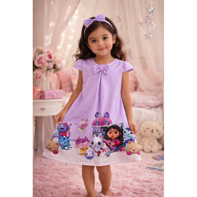 Vestido temático A Casa Mágica da Gabby integra a oferta da Shopee Brasil na subcategoria Vestidos (de Moda Infantil) por R$ 55,00. Com avaliação de 4.9 de 5 estrelas e 30 unidades vendidas, este produto se destaca pelo excelente custo-benefício.