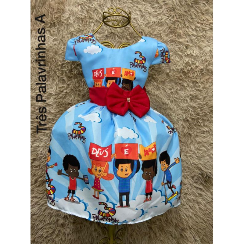 Vestido temático infantil festa aniversário personagem três palavrinhas