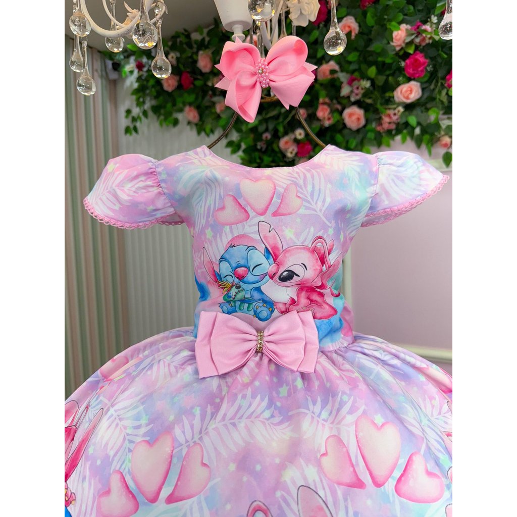 Vestido Tematico Luxo Stitch e Angel Modelo 2 Menina Infantil Festa Formatura Fantasia Aniversário