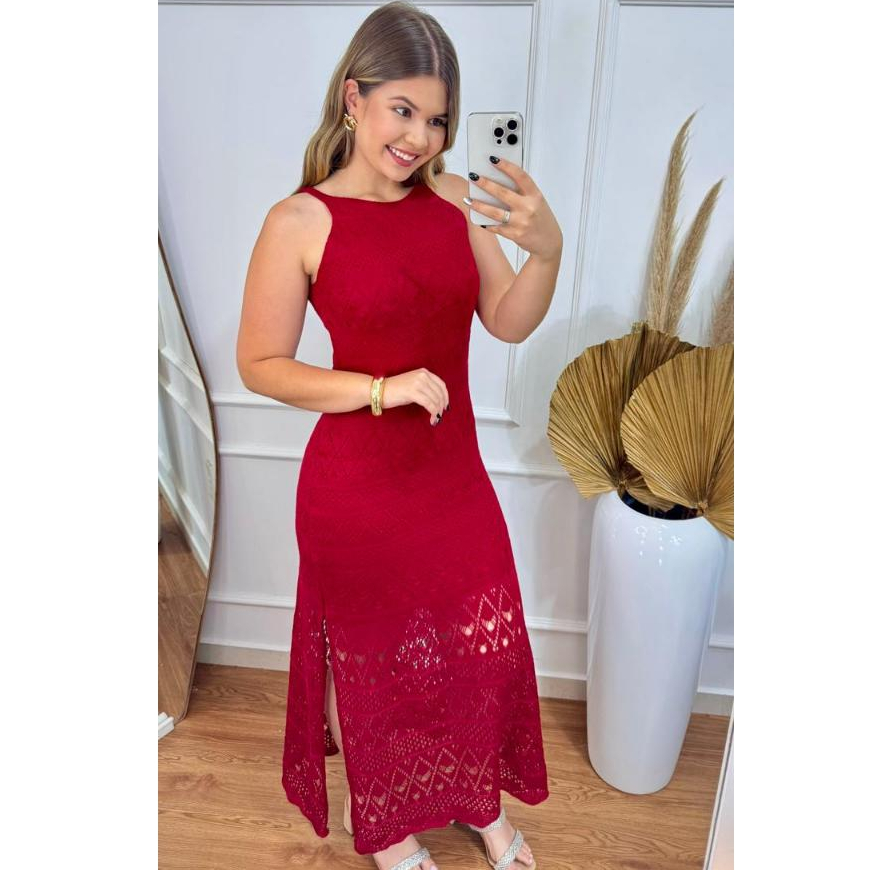 Vestido Tricô Longo Raabe Forrado Com Fenda Moda Feminina Elegante Luxo Festa Natal Réveillon