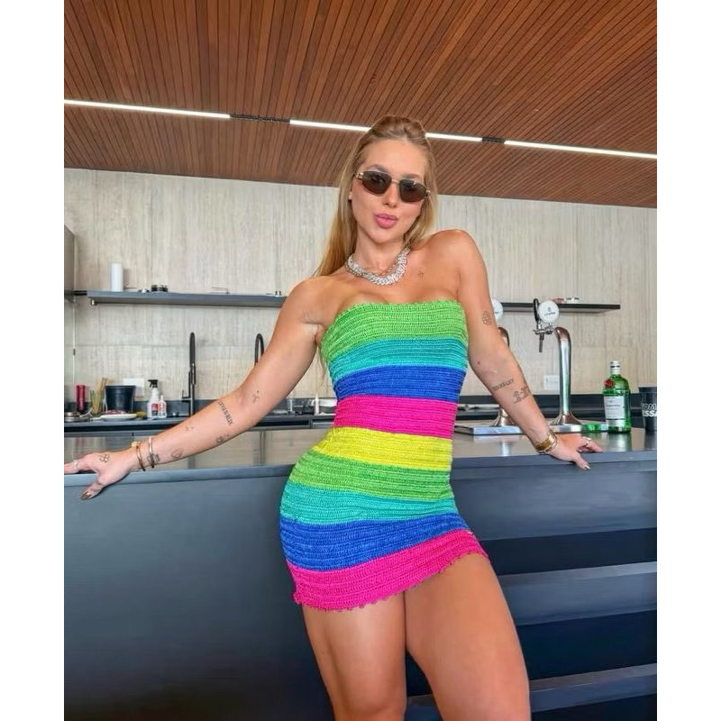 Vestido Trico Modal Virginia Curto Colorido Tomara que Caia Tendencia Verão