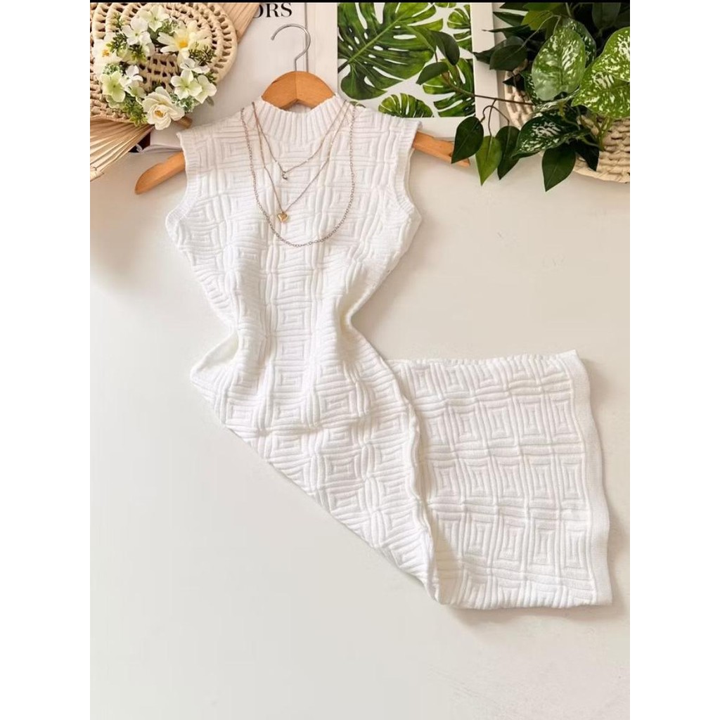 Vestido Tricot Modal Feminino Modelo Ponto Quadrado Midi Gola Alta Verão Tendência Festas