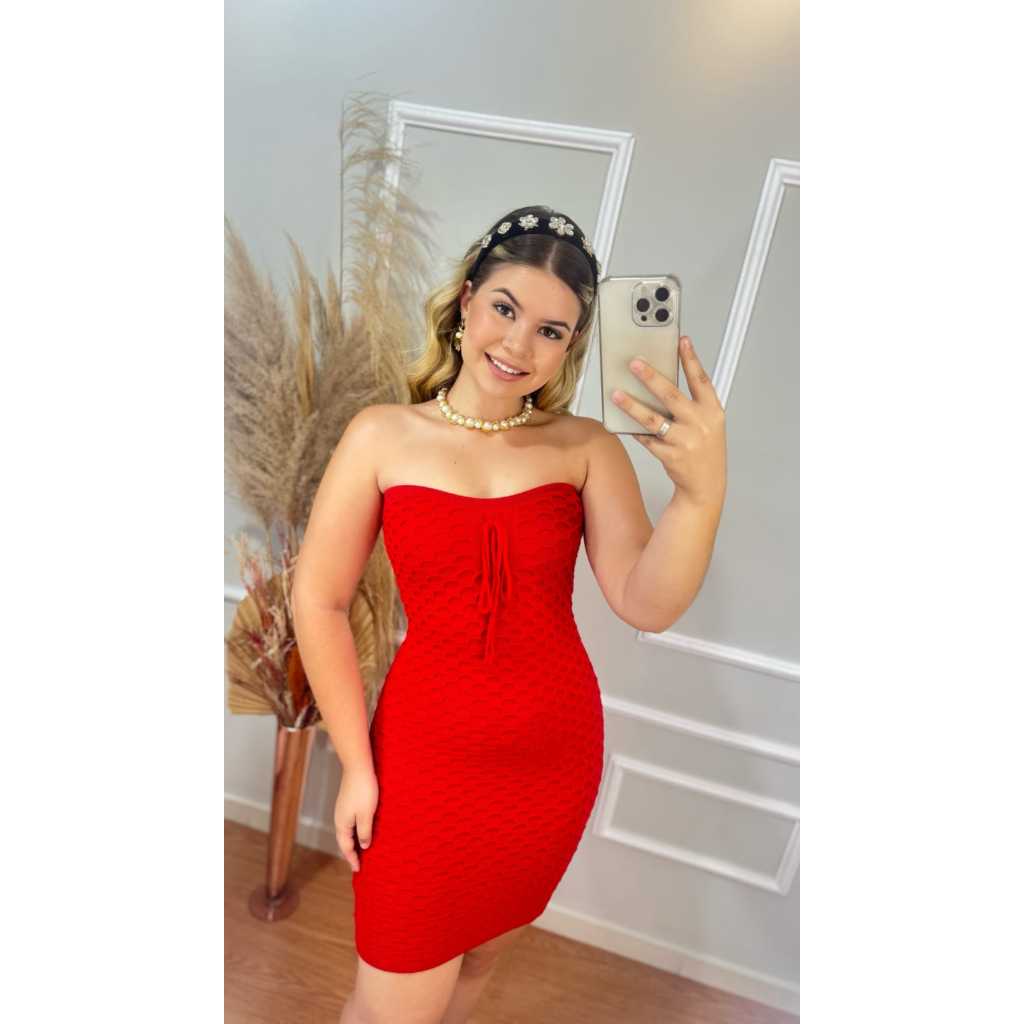 Vestido Tricot Modal Tomara que Caia Estilo Escama Justo de Amarrar