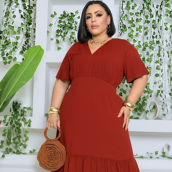 Sinta-se linda, elegante e confortável com este vestido Plus Size incrível! Um modelo pensado para valorizar suas curvas com sofisticação, sem abrir mão do conforto no dia a dia. ✨ Destaques do Produto: ✔ Cor Elegante: Um tom sofisticado que transmite personalidade e realça qualquer produção. ✔ Corte Perfeito: Cintura marcada que valoriza a silhueta e saia com babado que traz movimento e leveza ao look. ✔ Mangas Amplas e Decote em V: Detalhes que alongam a silhueta e trazem elegância ao visual. ✔ Tecido Leve e Fresquinho: Ideal para dias quentes, sem perder o charme e a sofisticação. ✔ Versátil e Estiloso: Perfeito para passeios, eventos casuais ou produções mais elaboradas com salto e acessórios. Medidas: G2 Cintura=122cm Comprimento=160cm Busto=120cm Quadril=168cm G1 Cintura=120cm Comprimento=160cm Busto=118cm Quadril=166cm