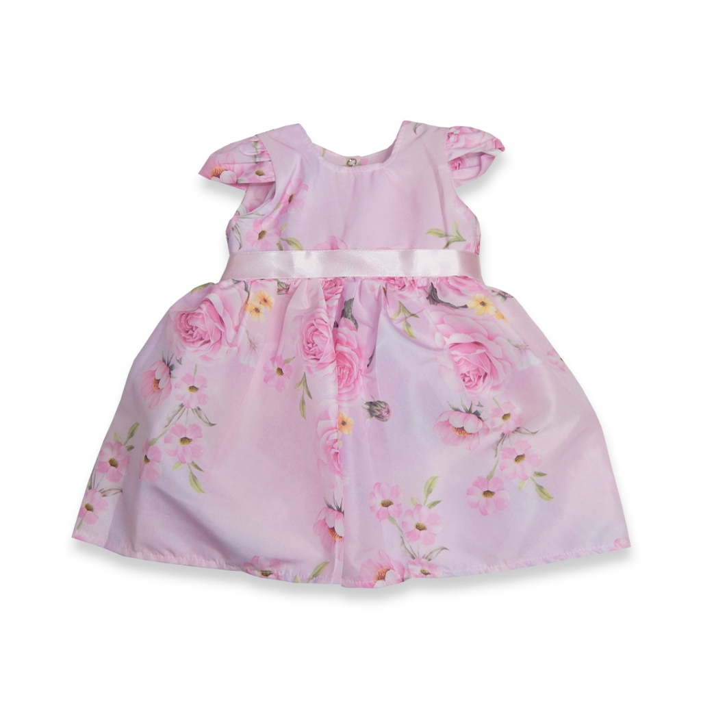 Vestidos Bebê e Infantil Estampado com Faixa de Cetim