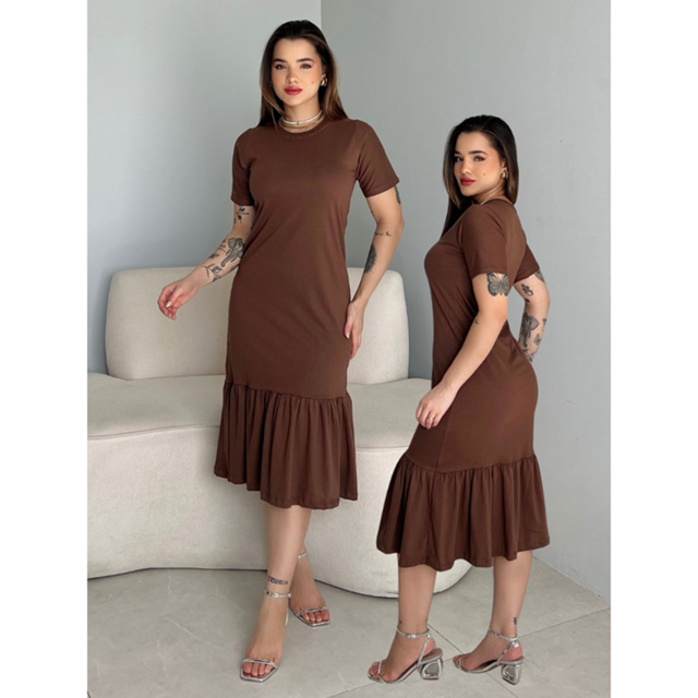 Elegante e Minimalista! O Vestido Blogueira Feminino é a escolha perfeita para quem quer um look sofisticado, confortável e cheio de estilo. Confeccionado em algodão de alta qualidade, este vestido midi com manga, babado na barra, um caimento impecável. Ideal para eventos, passeios ou até mesmo para o dia a dia com um toque especial! Medidas do Vestido (Tabela de Referência): Busto Quadril Altura Veste 47 CM 49 CM 112 CM 34/36 48 CM 51 CM 115 CM 48/40 50 CM 53 CM 119 CM 42/44 53 CM 57 CM 122 CM 46/48 Consulte a tabela antes de escolher o seu número. Destaques do Produto: ✅ Tecido em algodão – Maciez e respirabilidade para seu conforto. ✅ Modelagem blogueira – Decote cavado e caimento perfeito para valorizar seu corpo. ✅ Versatilidade – Use com sandálias para um look descontraído ou salto alto para arrasar em eventos. ✅ Comprimento longo – Elegância e sofisticação em um único vestido. MODO DE LAVAGEM -Lavar à mão ou na máquina de lavar com temperatura máxima de 40º -Não usar alvejante a base de cloro -Não usar secadora -Ferro de passar no máximo a 150º Esperamos que gostem! Tudo é feito com muito carinho pra você! Prezado cliente, favor selecionar a cor e o tamanho desejado e colocar no carrinho. Caso queira comprar mais unidades, cada uma de uma cor, você deve selecionar uma cor e adicionar ao carrinho, selecionar outra cor e adicionar ao carrinho, e assim sucessivamente até completar todas as cores e quantidades desejadas. Não faremos alteração de cor pelo chat, pois pode acontecer de o pedido ser faturado e expedido antes de lermos a sua mensagem. O transporte é feito pela transportadora da shopee que coleta os pedidos diretamente na nossa oficina. O seu pedido é encaminhado ao centro de distribuição e segue de forma rápida e segura até você. Esperamos que gostem! Tudo é feito com muito carinho pra você! Por favor, não nos avalie negativamente sem antes entrar em contato com nosso chat. Garantimos que faremos de tudo para te ajudar a resolver quaisquer problemas.