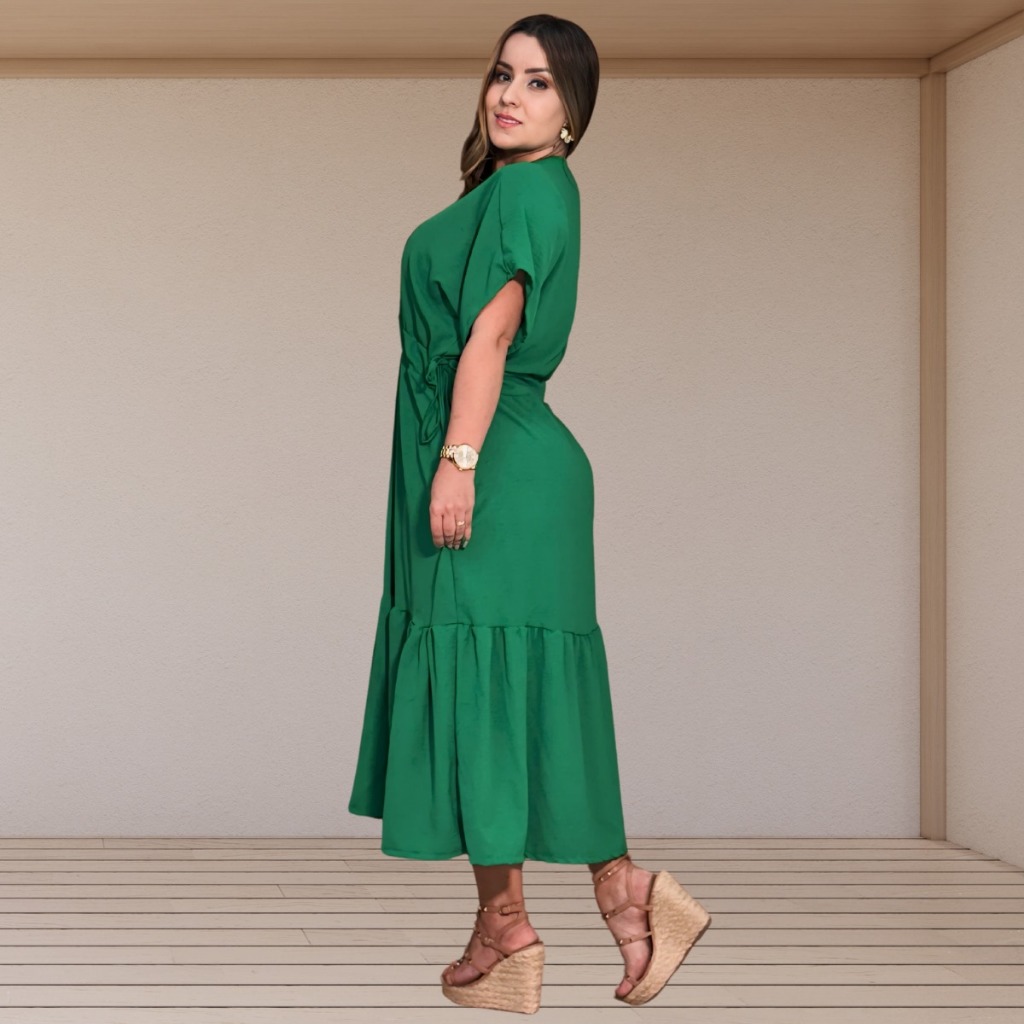 Bem-vindo(a) à Maia Modas! As cores do vestidos podem ter alterações dependendo do celular ou pc onde é visualizado a foto. Enviamos todos os dias! Temos fabricação própria! Não tem forro! Não é transparente! Tamanhos: M:38 ao 40 G:40 ao 42 GG:42 ao 44 G1:46 ao 48 G2:50 ao 52 Conheça nossos deslumbrantes vestidos confeccionados em tecido Dunas, que oferece um caimento perfeito sem amarrotar ou encolher. O viés na cintura garante um ajuste elegante e sofisticado, ideal para diversas ocasiões. Ideal para ocasiões com cultos evangélicos, igreja, casamentos e Formaturas Nossos produtos são fabricados com o mais alto padrão de qualidade, garantindo excelência desde a produção até o envio. Estamos sempre à disposição para esclarecer qualquer dúvida que você possa ter, oferecendo atendimento rápido e eficiente. Medidas da modelo (Tamanho m) na foto Busto: 87 cm Quadril: 97 cm Cintura: 70 cm Altura: 1,60 m Medida Da modelo Plus na foto Busto: 115cm Quadril:125 cm Cintura:99 Altura: 1,65 m Experimente a elegância e conforto dos vestidos Maia Modas e sinta a diferença!