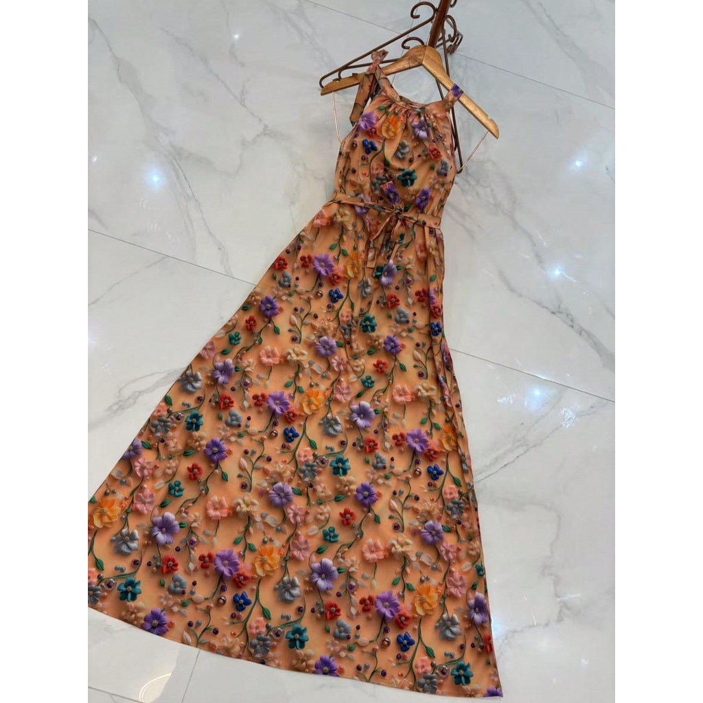 vestidos longo estampa 3d multicolorido novo modelo015-0052