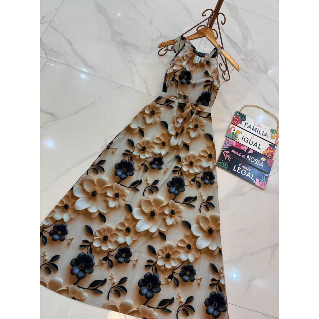 vestidos longo estampa 3d multicolorido novo modelo