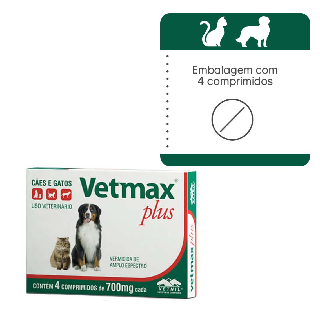 Vetmax Plus 700mg Vetnil 4 comp. Cães e Gatos Kit com 2