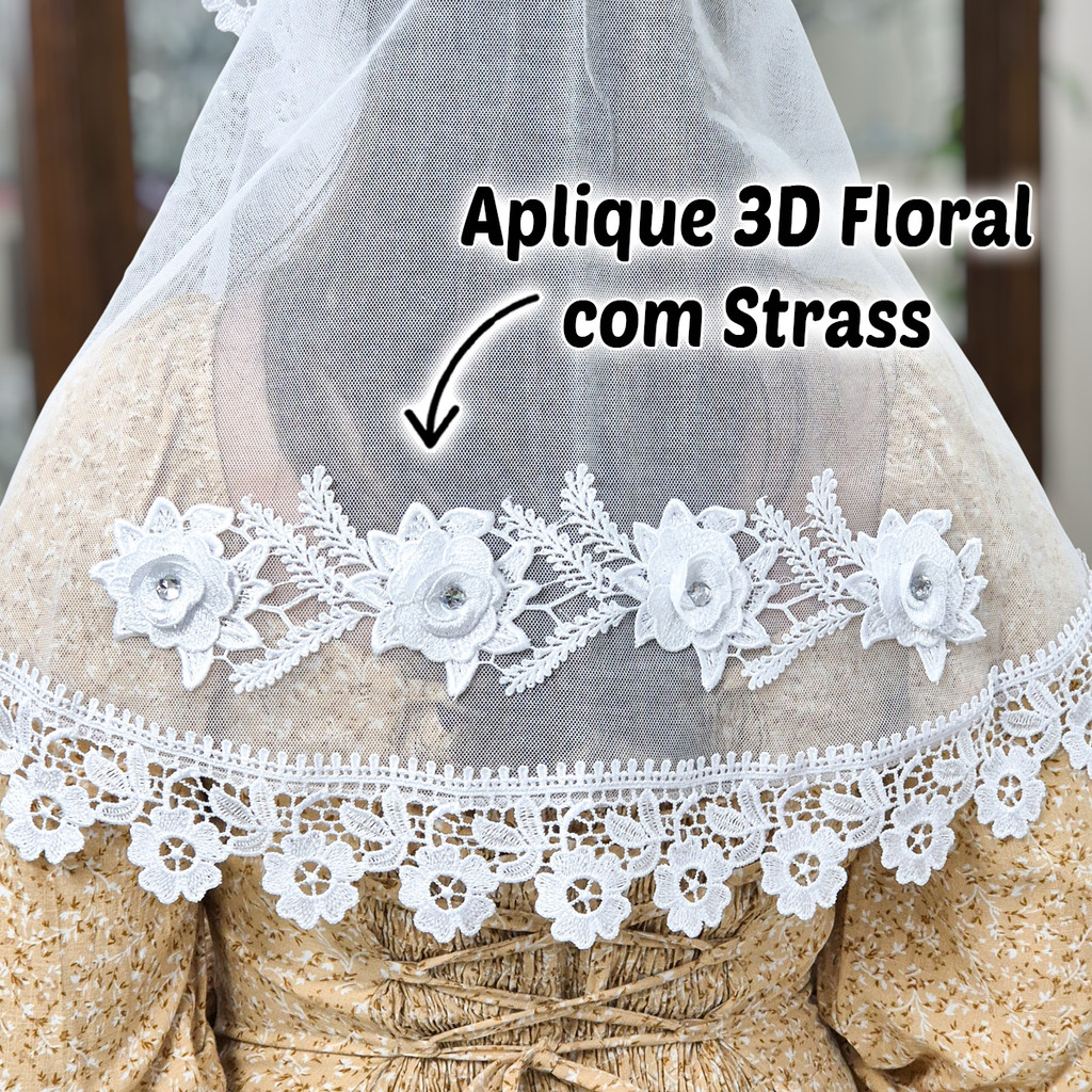 | Véu Ccb Aplique Floral 3D Com Strass Renda Guipir Média Adulto (mod... este produto | R$ 59,90 | 25% | 4.9/5 | 72 |