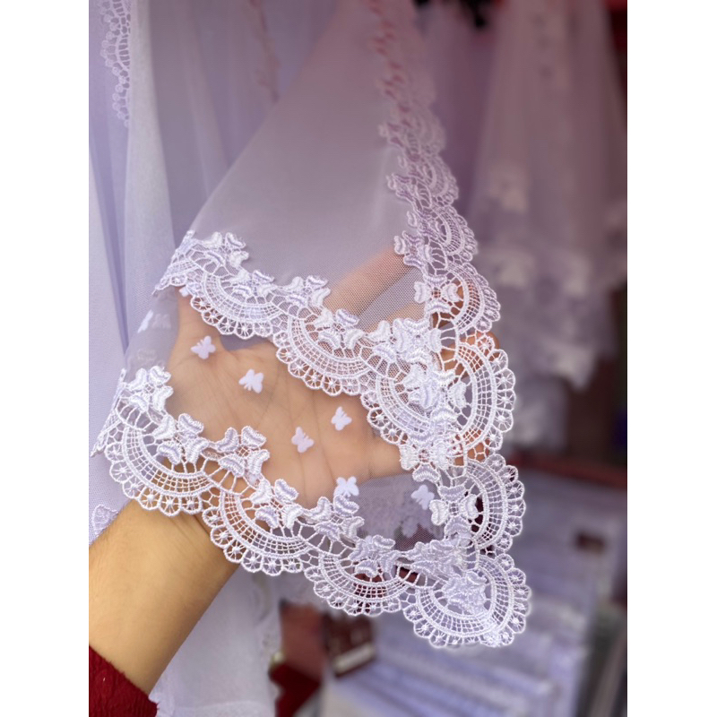 Véu CCB Congregação Algodão e Poá Renda Guipir Redondo Bico Mod-028