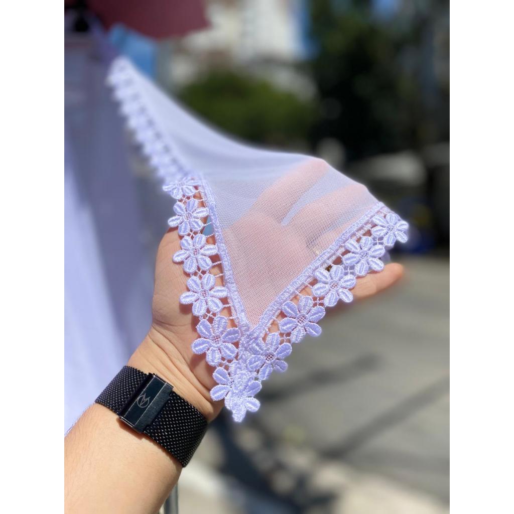 Véu CCB Congregação Algodão Flor Flores Floral Renda Guipir Redondo Bico Mod-059