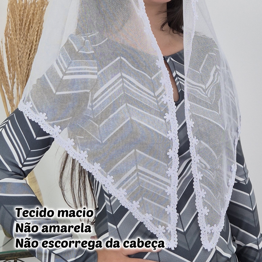 Véu Ccb - Igreja Congregação Cristã no Brasil. Tule Filó de Algodão Cor: Branco Formatos: Redondo (de Bico) e Retangular (Quadrado), escolha no momento da compra. Largura da renda: 1,5cm Medidas aproximadas do véu: Comprimento: entre 1,48m e 1,50m Largura: entre 53cm e 55cm Acompanha: Um lindo Porta Véu. O tecido misto (algodão e poliéster) é leve, fresco, forte, durável e não amassa com facilidade. Tecido de alta qualidade, fácil de cuidar e de manter sempre branco. Temos Véus a pronta entrega, pois trabalhamos com fabricação própria. - PRONTA ENTREGA / ENVIO IMEDIATO - COMPRA SEGURA - GARANTIA TOTAL
