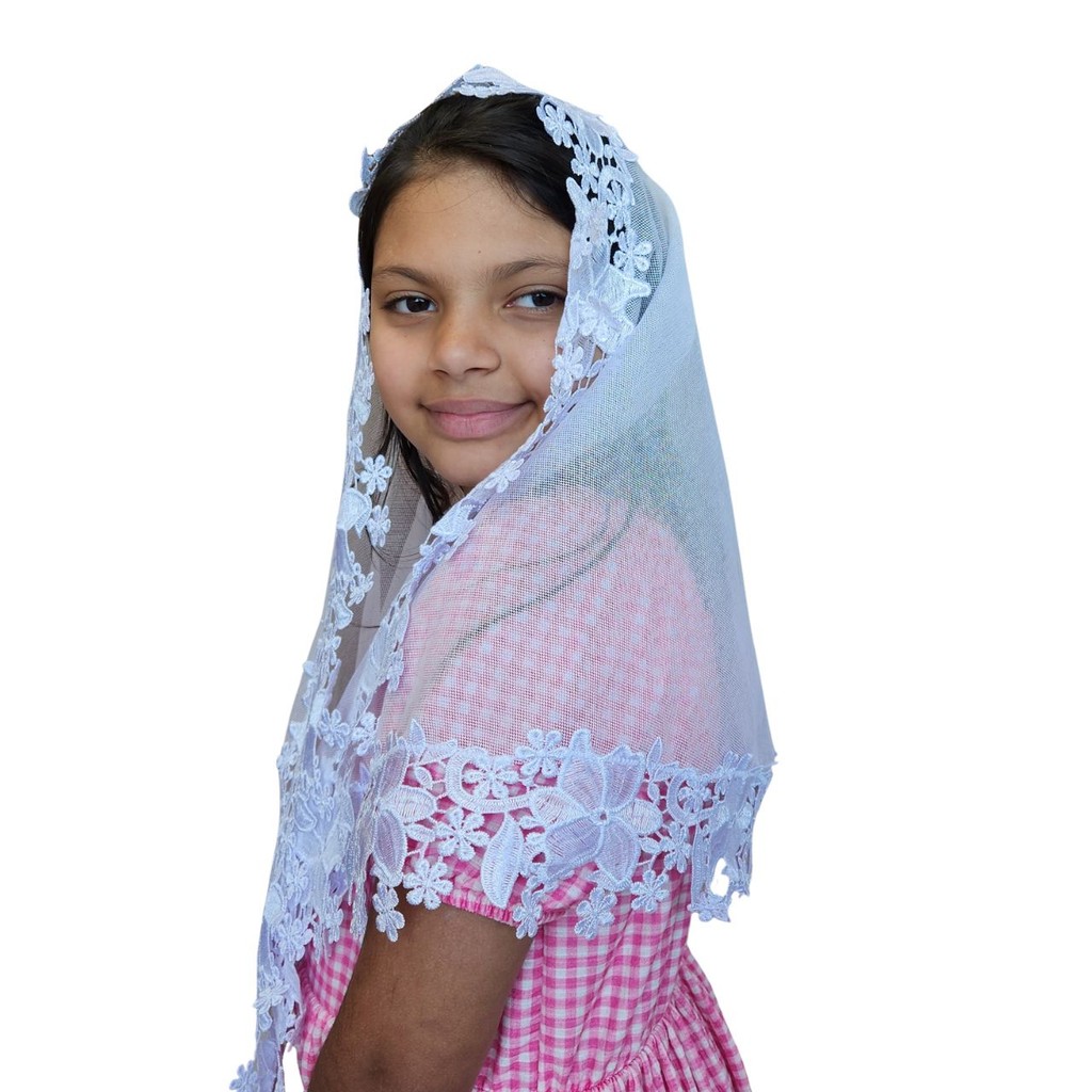 Véu CCB Infantil Luxo Com Aplicação Renda Larga Confeccionado com Filó Verona (75% algodão e 25% poliéster) e Renda Guipir (100% poliéster). A composição do filo proporciona durabilidade e toque macio do véu. Dimensão: Aprox. 1,10 x 0,40 (podendo variar conforme a largura da renda). REDONDO = Ou Véu de Bico, tem apenas 2 bicos. Ele tem a frente retinha e as costas em formato de meio círculo. Ele é mais anatômico ao corpo, se encaixando melhor em nós. RETANGULAR = Ou véu Quadrado, é o formato mais tradicional. Ele é um retângulo com 4 bicos. Todos nossos véus acompanham porta véu com zíper.éu com zíper.