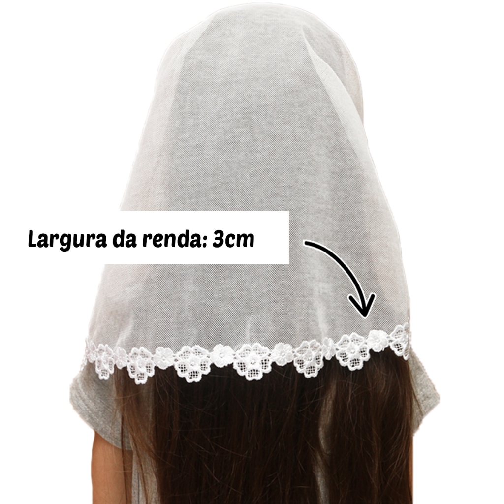 Véu Ccb Infantil Renda Guipir Floral Redondo De Bico Várias Idades Congregação Cristã (mod. Sofia)
