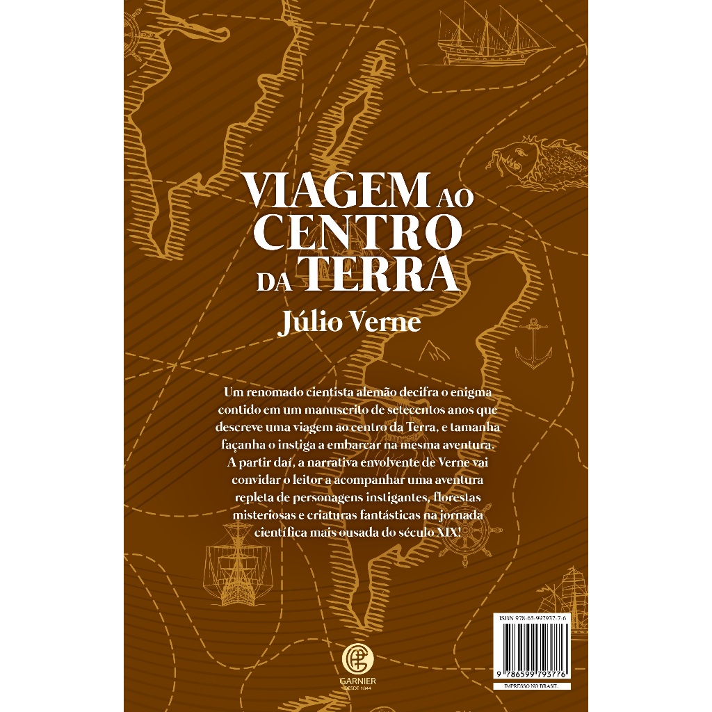 Um renomado cientista alemão decifra o enigma contido em um manuscrito de setecentos anos que descreve uma viagem ao centro da Terra, e tamanha façanha o instiga a embarcar na mesma aventura. A partir daí, a narrativa envolvente de Verne vai convidar o leitor a acompanhar uma aventura repleta de personagens instigantes, florestas misteriosas e criaturas fantásticas na jornada científica mais ousada do século XIX! SOBRE O AUTOR Tido como precursor da literatura de ficção científica, Júlio Verne nasceu em Nantes, França, em 08 de fevereiro de 1828. Autor de obras que inspiraram gerações, era apaixonado por viagens que, na época, eram feitas em navios. Em 1850, formou-se em Direito, mas a insatisfação com o trabalho o fez seguir o conselho do editor Pierre-Jules Hetzel, que publicou seu primeiro livro, intitulado Cinco Semanas em um Balão (1863). A partir daí, sua carreira literária ganhou fôlego e o autor nunca mais parou de criar suas narrativas detalhadas de ficção, muitas das quais apresentaram invenções que se concretizaram séculos depois. Faleceu em 1905 em Amiens, na França. DESCRIÇÃO DO PRODUTO: ISBN13: 9786599793776 Páginas: 176 Publicação: 2ª Edição - 2022| Editora Garnier Encadernação: Brochura Formato: 15,1 x 23,0 cm Autor: Júlio Verne