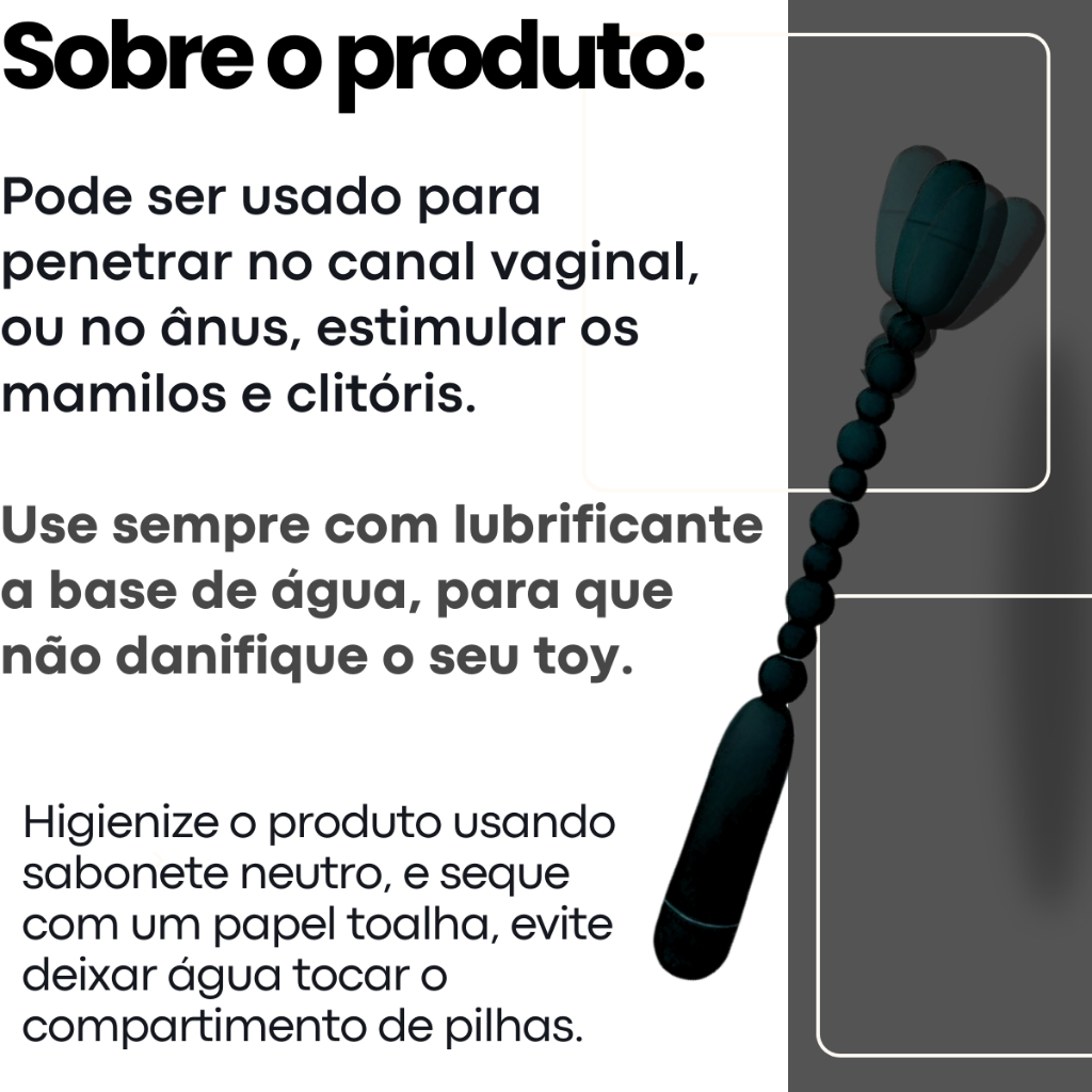 Penetrador Escalonado Flexível Multivelocidades - Lovetoys O Penetrador Escalonado foi criado para quem busca novas descobertas, texturas intensas e estímulos diferenciados. Seu formato escalonado, com bolinhas ao longo de todo o corpo, proporciona sensações deliciosas durante a penetração, seja vaginal, anal ou para explorar zonas erógenas pelo corpo inteiro. Confeccionado em material seguro e suave ao toque, ele oferece conforto e prazer combinados. Seu vibrador multivelocidades adiciona ainda mais intensidade, permitindo que você escolha o ritmo perfeito para cada momento. Versátil, flexível e estimulante, este penetrador é ideal para quem deseja inovar e experimentar novas sensações com total liberdade. Ficha Técnica: Composição: ABS Dimensões: 29cm sendo 19cm penetráveis x 2,5cm (medidas aproximadas) Utiliza 2 Pilhas AA (não inclusas) Modo de Uso: Certifique-se de que as pilhas estejam na posição correta e o compartimento bem fechado. Gire o botão para ligar/desligar e alternar a intensidade de vibração. Higienização: Higienize seu brinquedo antes e após cada uso. Limpe com água e sabão neutro e, para uma higiene completa e segura, recomendamos a utilização de higienizadores em líquido ou por luz UV. Após a lavagem, seque com papel toalha ou deixe secar naturalmente. Após seco, acondicione em sua embalagem original ou em um saco plástico, separado de outros brinquedos. Nunca expor seu produto a temperaturas superiores à 50ºC. Cuidados: Não utilize óleo mineral ou produtos à base de óleo, pois o contato com óleos e cremes pode causar danos irreversíveis ao produto. Não utilize este produto em zona inflamada, lesionada, inchada, com lacerações ou patologias. Não utilize o produto caso o mesmo apresente danos ou anomalias (mudança de cor, aspecto alterado, deformação, aquecer de forma anormal, etc). Não guarde o produto com as pilhas, isso poderá diminuir a vida útil dele. Havendo irritação, suspenda o uso e procure orientação médica. Mantenha fora do alcance de crianças. Observações: As imagens de exibição do produto são utilizadas para fins ilustrativos. As imagens do site podem sofrer alteração de cor dependendo do monitor e da resolução em que elas estão sendo visualizadas. As dimensões especificadas no produto são as medidas padrão disponibilizadas pelo fabricante, porém são aproximadas e poderá sempre conter alguma variação leve de dimensões.