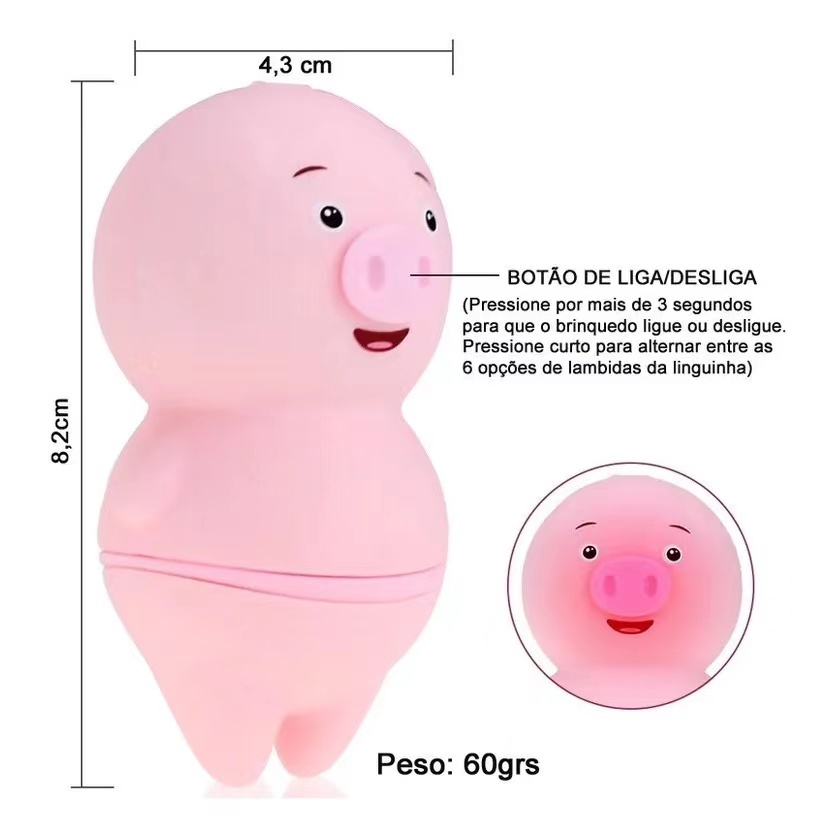 VIBRADOR PORQUINHO masturbador feminino com Esimulador de língua - 6 modos de vibração