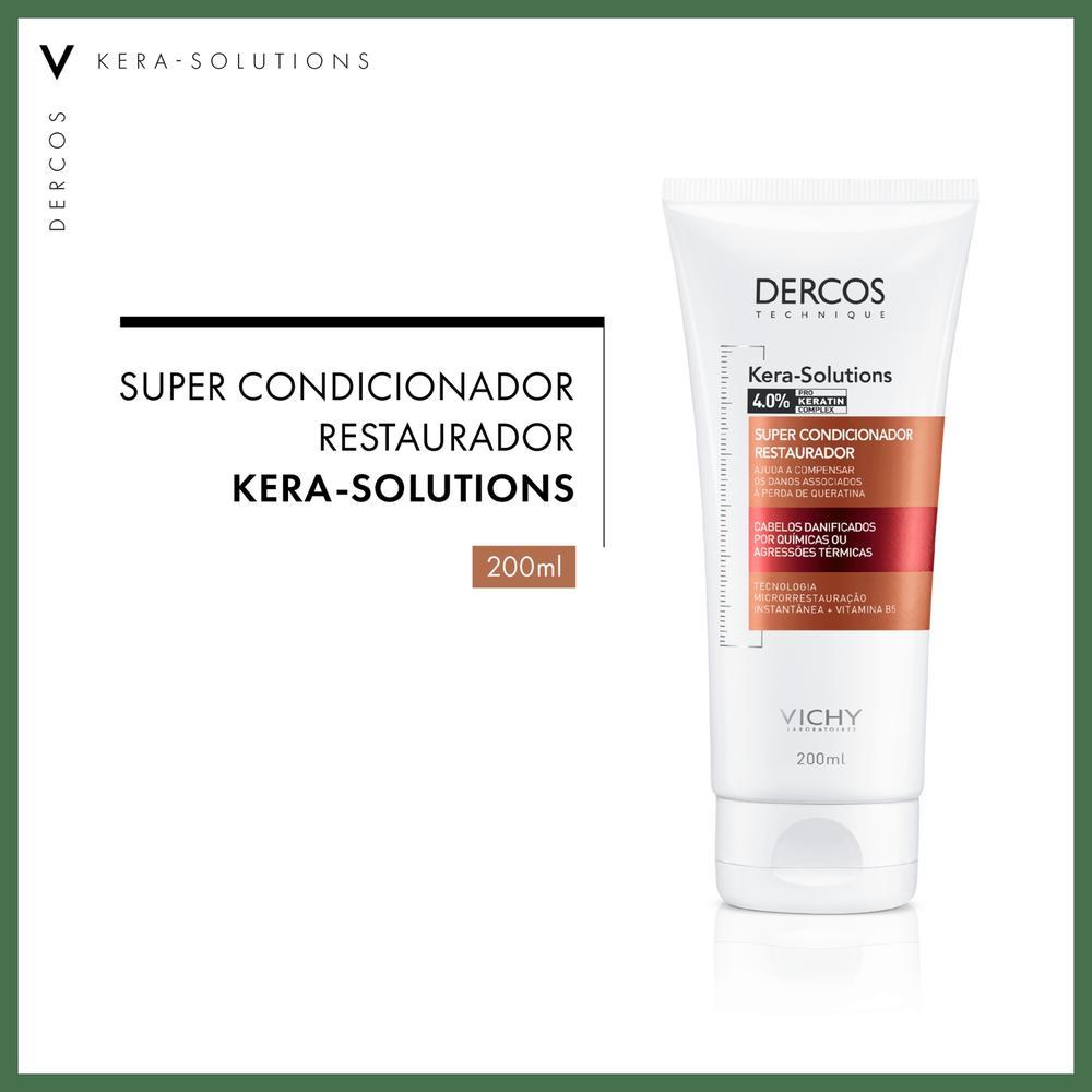 Condicionador para cabelos danificados por químicas ou agressões térmicas. Condicionador Vichy Dercos Kera-Solutions é desenvolvido para restaurar a saúde dos fios, devolve a maciez e o brilho, sendo ideal para quem busca um tratamento reparador de uso diário. O Condicionador Vichy Dercos Kera-Solutions resolve esse problema com sua tecnologia de micro restauração. Formulado com 4,0% de Pro-Keratin Complex e Vitamina B5, ele age precisamente nas áreas danificadas, repondo a massa capilar e fortalecendo a fibra desde o primeiro uso. Os principais benefícios incluem reparação intensa, hidratação profunda e cabelos mais resistentes. O resultado esperado é um cabelo visivelmente mais saudável, macio, com brilho e protegido contra o frizz e a umidade por até 48 horas, recuperando sua vitalidade natural. Benefícios de Vichy Dercos Kera-Solutions ▸Repara intensamente os cabelos danificados por químicas e calor, restaurando a saúde e a vitalidade dos fios.▸ Com 4,0% de Pro-Keratin Complex e Vitamina B5, fortalece a fibra capilar e promove hidratação profunda.▸Sua ação condicionante sela as cutículas, deixando os cabelos macios, sedosos e com brilho imediato.▸Oferece proteção antifrizz e antiumidade por até 48 horas, garantindo um cabelo alinhado por mais tempo.▸Conquiste cabelos completamente renovados, resistentes e com uma aparência incrivelmente saudável e radiante. **** IMPORTANTE: Não vendemos para contas CNPJ, evite que seu pedido seja cancelado! ****