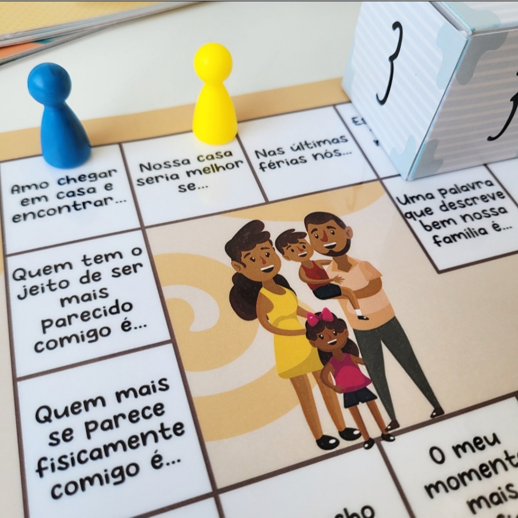 Questionamentos diferentes para ampliar a comunicação familiar e facilitar a compreensão do profissional sobre a dinâmica da família. A linguagem utilizada, primeira pessoa do singular, foi escolhida para aumentar a identicação dos participantes do jogo com o mesmo, agregando autorresponsabilidade como um valor. As propostas que envolvem memórias afetivas visam trazer à tona momentos especiais vividos no ambiente familiar. As propostas que falam sobre os desafios buscam ampliar a comunicação familiar sobre conceitos, considerando emoções que são vistas, muitas vezes, como negativas, mas que fazem parte do repertório emocional dos seres humanos. As propostas que abordam o fortalecimento da base familiar buscam agregar o conceito de união e pertencimento.