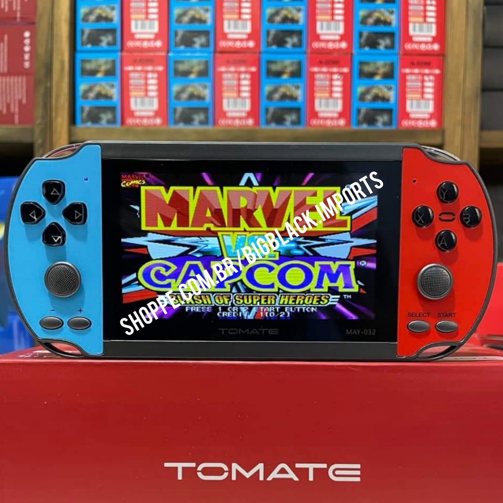 PRODUTO NO BRASIL COM ENVIO IMEDIATO! Video Game Portátil Tomate Tela HD LCD 4.3 Alta Resolução Ps1, N64 64GB MAY-032 +15mil Jogos INFORMAÇÕES: Modelo: MAY-032 Marca: TOMATE Sistema Operacional: LINUX / Emulec 4.3 Processador: RK3126C Quad-Core Cortex-A7 Até 1.2 GHz Memória do Sistema: 256MB Capacidade de Armazenamento: 64GB Visor: Tela LCD 4.3 polegadas HD Alta Resolução Bateria: 1500MAH Expansão: Suporte máximo 128GB Entrada para fone de ouvido (não acompanha o produto) Fonte de alimentação: 5V 2A Obs.: Não carregar com carregadores turbo; pode danificar a bateria do portátil. 24 Simuladores: PS1, N64, NPC, GMD, GG, SG, GBA, GBC, SFC, SF, GB, NESH, ES, PCE, CP1, CP2, CP3, LYNX, ATARI 7800, ATARI 5200, ATARI 2600, MAME, FBN, ARCADE CLÁSSICO. Video Game Tomate MAY-032 é um portátil poderoso, com processamento super rápido. Inclusive, consegue rodar alguns jogos de N64. Acompanha na Embalagem: 1x Game Portátil May-032 64GB +15mil jogos 1x Cabo usb para carregamento tipo C 1x Manual em Português