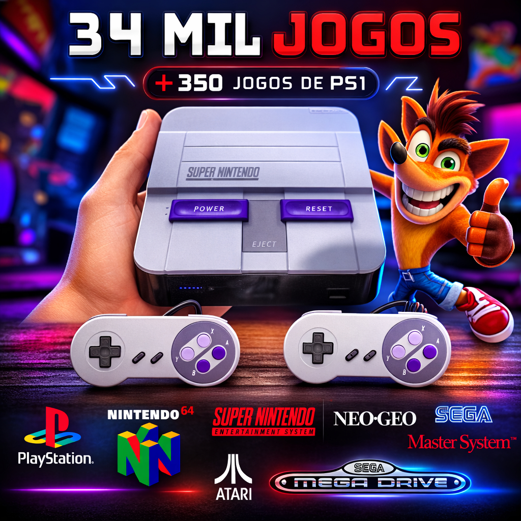 | Videogame Hiper Retro 34 Mil Jogos 2 Controles Snes este produto | R$ 232,00 | — | 4.7/5 | 37 |