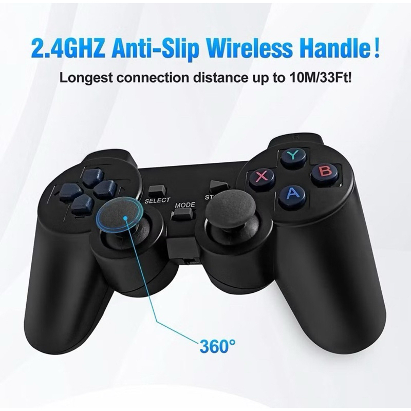O pacote inclui: 2 x Console de Jogo, 1x Bastão de Jogo, 1 x receptor de sinal sem fio, 1 x Cabo de Dados de Carregamento USB, 1 x pacote de cartão de memória (64G), 1 x cabo de extensão de sinal, Memória TF de 64 GB: 10.000+ jogos Saída HDMI 4K Este console de jogo é adequado para TV que tenha conexao HDMI e 4K. Certifique-se de que seu monitor tenha uma porta de entrada HDMI. Com 1080P de alta definição de qualidade de imagem, você pode jogar jogos animados interessantes na tela grande. Suporte 8 formatos de jogo para atualizar chip GB2 CPU, host integra mais de 8 emuladores, compatível com jogos de formato MAME, GB, GBA, GBC, MD, SFC, FC, você pode baixar e economizar em Seu armazenamento de cartão;