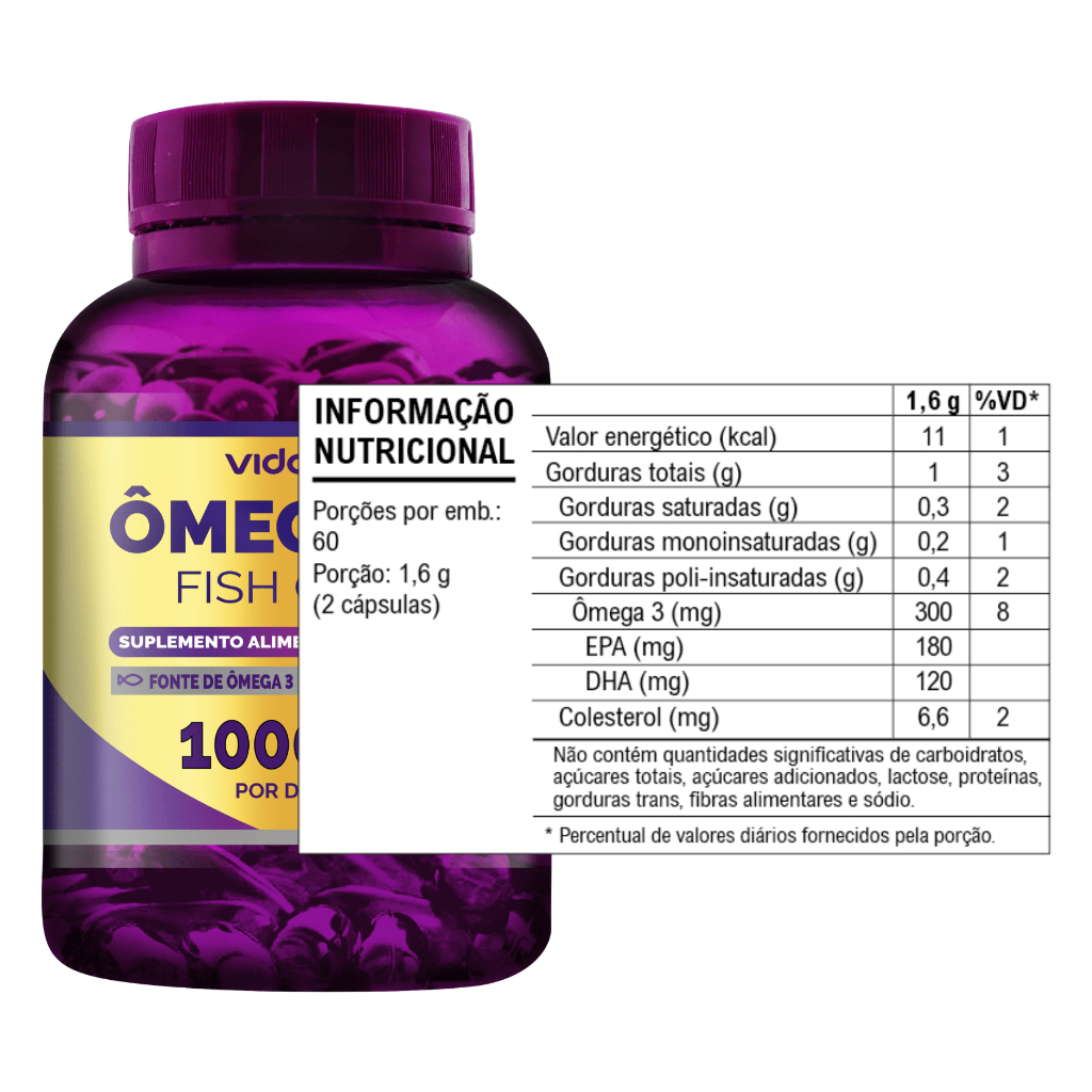 Cuide do seu corpo com o Vidora Ômega 3 1000mg! Fonte de EPA e DHA, ele ajuda a manter a saúde do coração, do cérebro e das articulações em equilíbrio. Esse suplemento de alta qualidade contribui para o controle dos triglicerídeos e para o bom funcionamento cognitivo. Com 120 cápsulas gel, é uma opção prática para quem deseja os benefícios do ômega 3 no dia a dia.