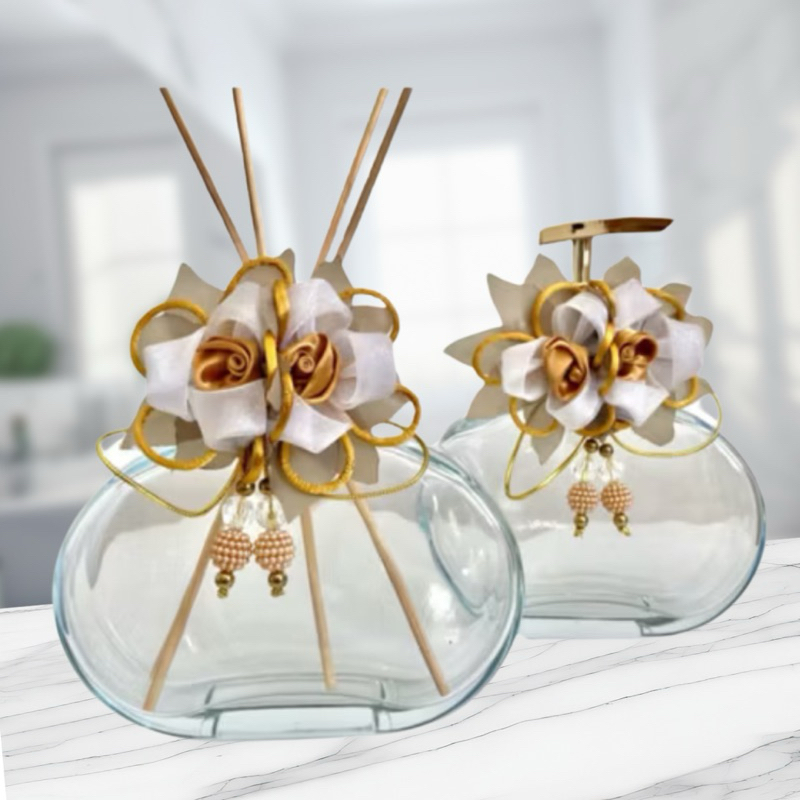 Vidros Difusor de Varetas e Saboneteira Com Laço Luxuoso