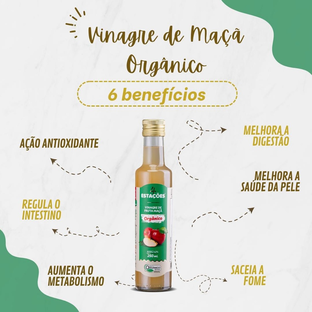 | Vinagre de Maçã 4 Estações 100% Orgânico 500ml • Acidez 4% • Natura... este produto | R$ 26,90 | 9% | 5.0/5 | 7 |